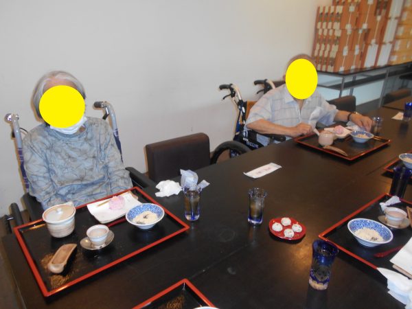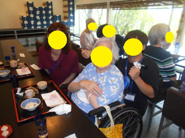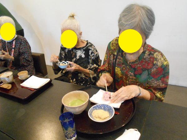 敬老のお祝いに美味しい和菓子のセットをみんなで食べて楽しい時間を過ごしました。