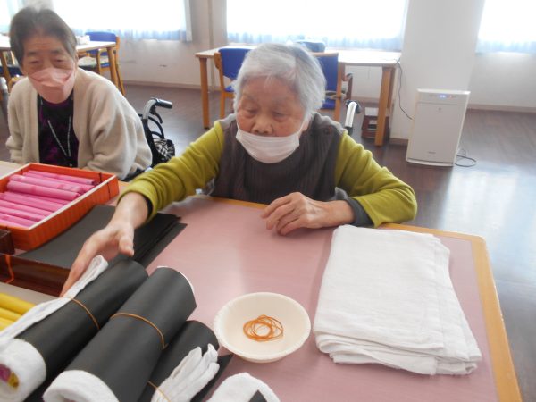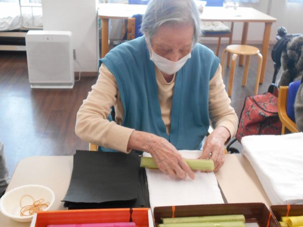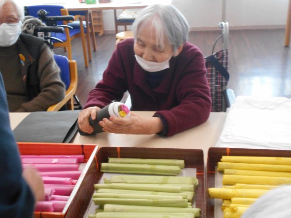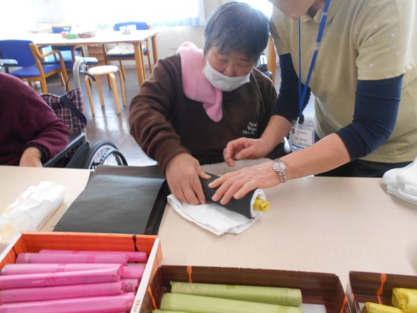「恵方巻ゲーム」では、制限時間内に何本恵方巻を作ることができるか競争しました!
