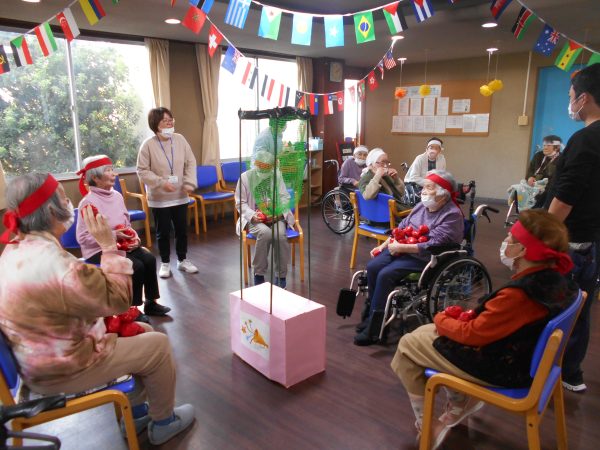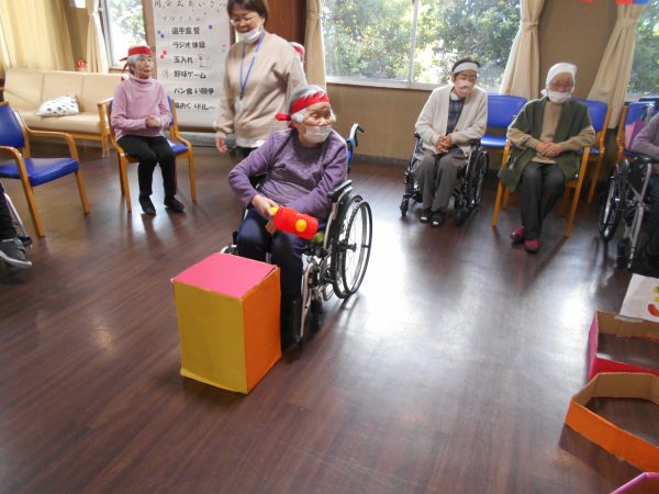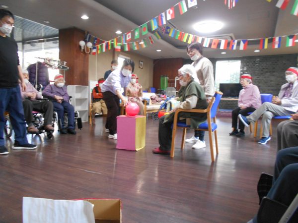 ラジオ体操で体をほぐした後は、最初の競技「玉入れ」です。