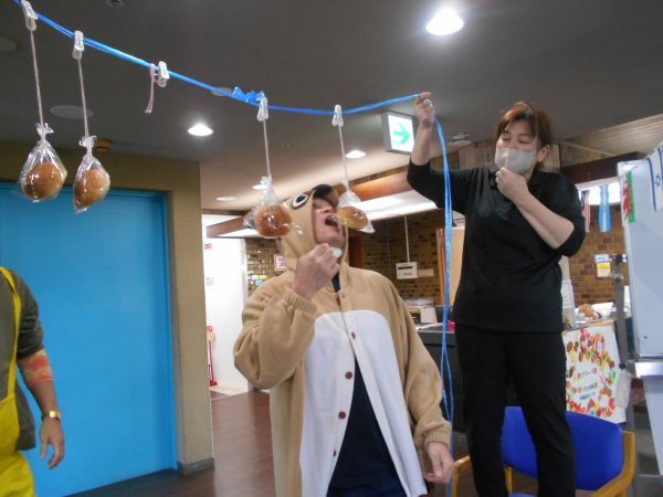 ジュース早飲み、早着替え、最後にパン食い競争!!